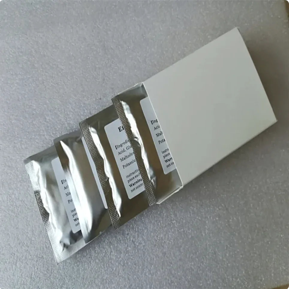 Effervescent mask sheets for facial skincare. Each box contains 4 boards, with 8 pellets per board (32 pellets total), packed in a white box (size: 115 x 90 x 40 mm). Designed for acne/anti-acne and moisturizing efficacy. Ideal for DIY face mask making with fruits or vegetables.